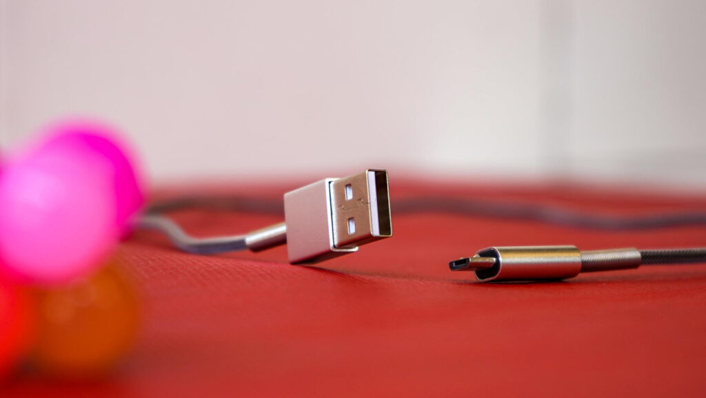 Le câble USB-C est un composant actif. Au-delà de 60 W, il doit embarquer un e-marker pour annoncer 100/140/240 W et autoriser 5 A à 20 V ; sinon, la négociation PD se limite et l’ordinateur « grignote » sa batterie sous charge. Même logique pour la vidéo : un câble prévu pour l’USB 2 « charge only » transporte mal un flux DisplayPort haut débit, d’où images qui décrochent, luminosité qui saute et périphériques qui disparaissent en pleine copie. Choisissez un câble court, certifié, capable de lier les trois contraintes : puissance visée, débit USB (au moins 10 Gb/s si vous exploitez un SSD via le dock) et Alt Mode DP stable. Évitez les rallonges et les chaînes de dongles qui cumulent résistances et pertes. Au premier signe de yo-yo (charge instable, écran qui noircit à la reconnexion, SSD qui ralentit), testez avec un autre câble e-marker : c’est la panne la plus fréquente… et la plus simple à corriger.